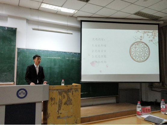大会伊始,主持人简要阐述了协会过去一年来在学院领导的关怀下和温凯老师的悉心指导下所做的工作和取得的成果,随后主席候选人和部长候选人依次上台演讲,他们自信满满,在展示自己优势的同时,也提到了目前自己和就业指导协会存在的不足之处,都对就协未来发展做出了规划和设想。