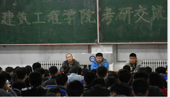 在典型经验交流环节,学院推选了考取哈尔滨工业大学建筑学专业的刘荭达同学、考取哈尔滨工业大学(深圳)城乡规划学专业的刘旭东同学、考取大连理工大学建筑与土木工程专业的金玉格同学、考取太原理工大学建筑与土木工程专业的李振国同学、考取北京科技大学建筑与土木工程专业的王攀同学、考取北京交通大学力学专业的刘进平同学等六名考研典型,分别从专业与院校选择、心理与身体调试、时间与生活安排、基础与专业复习、初试与复试准备等五个方面进行了总结汇报。之后,会议专门安排了互动交流环节,在场的2018届毕业生纷纷就自己感兴趣的问题与发言学生进行了探讨、沟通,进一步明确了考研目标、坚定了考研信心。