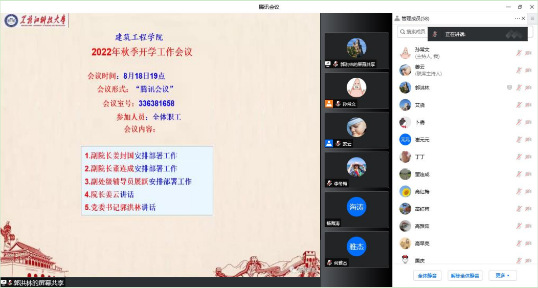 为抓好秋季开学启动工作,确保秋季学期各项工作的顺利开展,8月18日19:00,英国365集团公司组织召开了2022年秋季学期工作部署线上会议,学院全体教职工参加了会议,会议由学院党委书记郭洪林主持。