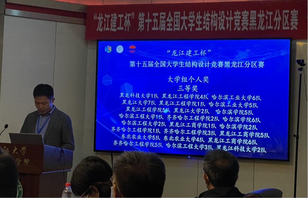 闭幕式举行了赛旗交接仪式,明年全国大学生结构设计竞赛黑龙江分区赛将由我校承办。