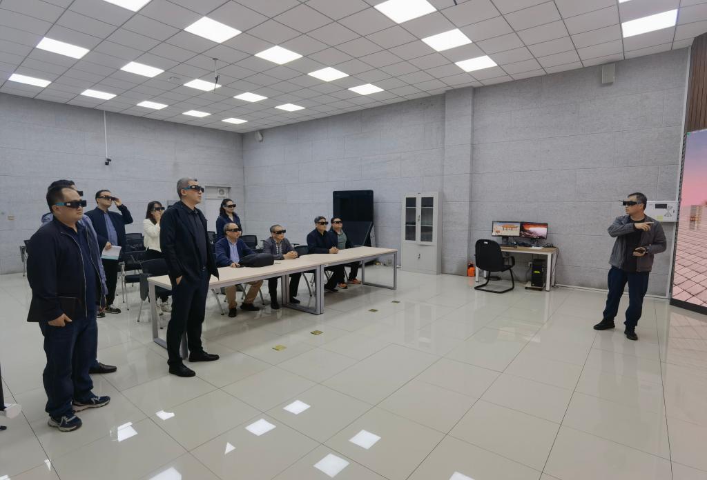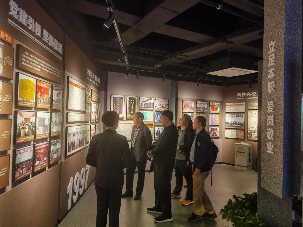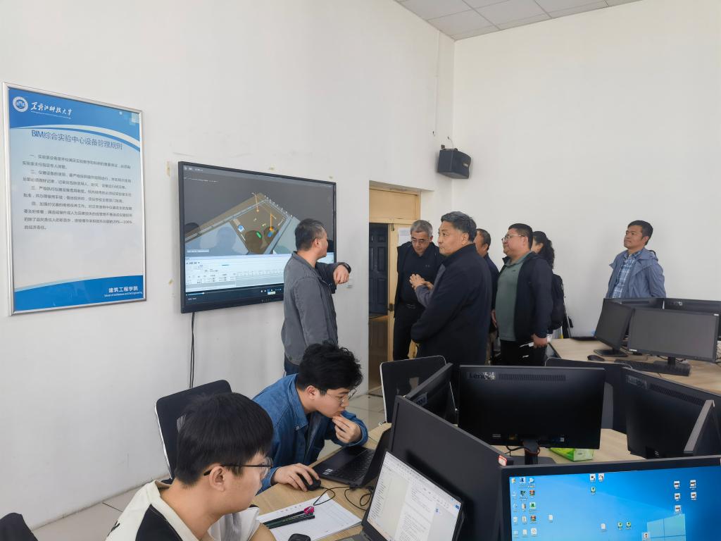 座谈会后,来访人员参观了我校建筑全过程虚拟仿真实验教学中心和BIM综合实验中心,工程管理系主任赵建介绍了两个中心建设的基本情况,展示了高沉浸感三维立体显示交互环境下的教学方法及学校在建碳谷大厦的BIM建模方法。随后,双方还共同参观了学校校史馆和模拟矿井,了解我校发展历史和办学特色。