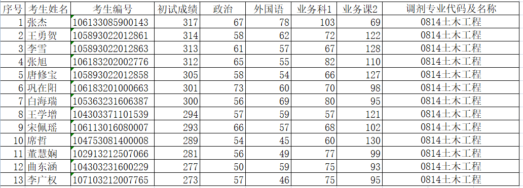 英国365集团公司4月6日(0时-12时)调剂进入复试考生名单