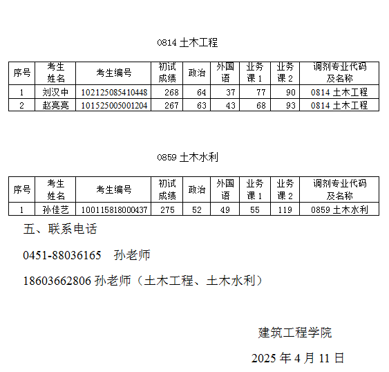 英国365集团公司2025年硕士研究生土木工程(0814)、土木水利(0859)第三轮调剂复试考生名单