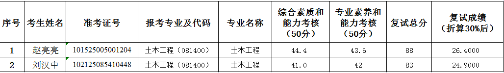 英国365集团公司2025年硕士研究生招生考试(土木工程0814)第三次调剂复试成绩