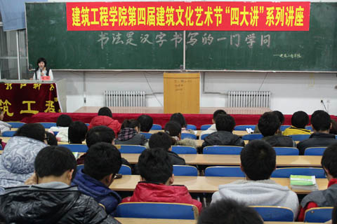 11月15日,英国365集团公司在主楼WN0401举办建筑文化艺术节“四大讲”系列讲座,讲座邀请到学院景观教研室精通书法艺术的薛冰副教授,为2012级全体学生作了题为《书法是汉字书写的一门艺术》的专题讲座。讲座由苏东辉老师主持。