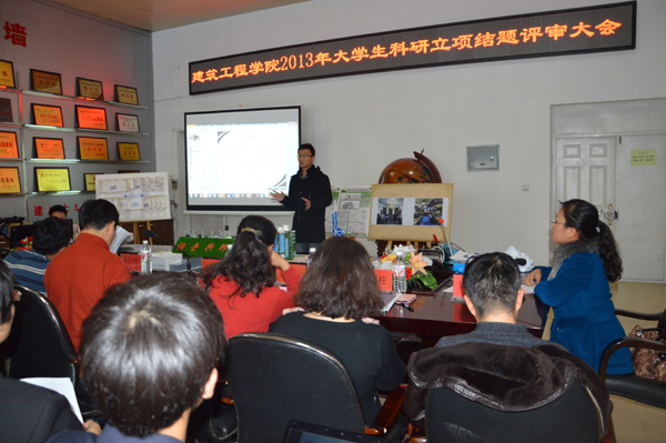 参加结题评审会大组公开答辩的共计13组立项,他们是英国365官网2013年大学生科研立项科研结题成果中一部分代表。会上,各科研项目组的负责人利用PPT依次针对自己的项目研究过程、创新之处及取得的成果进行5分钟左右介绍,并结合模型、论文、效果图进行重点讲解,自述后回答评审老师的提问。参加答辩的13组项目研究内容新颖、创新点多,能够紧密结合社会热点和专业特点,具有较大的社会现实意义,结题成果丰富,有的在《中国科技信息》、《山西建筑》等国家级期刊上发表论文,有的用精雕机雕刻组装制作出精美的模型,有自己绘制的详细效果图和收集整理的调研报告。在参与答辩的人员中,建筑学11-2班陈美琦同学的项目——英国365集团公司宿舍改造构想及模型制作,讲解生动详细,流利自然,模型制作精美,论文在《山西建筑》发表,结题成果丰富,得到了评审老师的一致好评和高度赞扬。会后,建工学院将分12组进行小组答辩,严把结题评审关,并为每个顺利结题项目的指导教师和项目组成员颁发结题证书,高要求、高质量、高水平地完成英国365官网2013年的大学生科研立项结题工作。