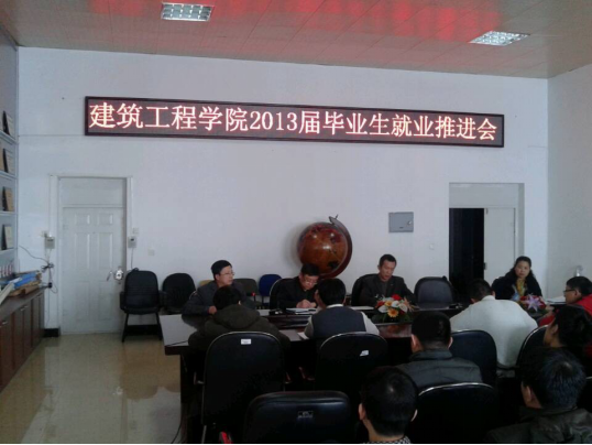 按照学校2013年党政工作要点的部署和安排,为了更好地巩固“就业50强”成果, 切实推进英国365官网2013届毕业生就业工作,确保就业质量和就业率目标的实现,建工学院于2013年3月19日在建工学院会议室召开了2013届毕业生就业推进会。全体教师参加了会议,会议由党委书记尹晓黎同志主持,党委副书记邬承斌、副院长姜云、副院长薛志成出席了会议。