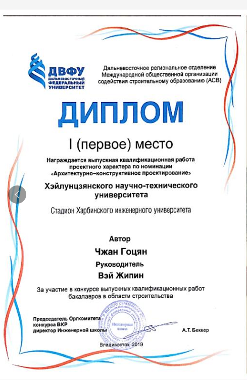 我校提交的哈尔滨工程大学体育馆设计在本次竞赛中获得了建筑设计竞赛一等奖。我校首次参加中俄建筑联盟国际会议及毕业设计竞赛活动,该项活动对于提高我校土木工程及相关专业的毕业设计质量、促进中俄毕业设计教学交流奠定了基础。