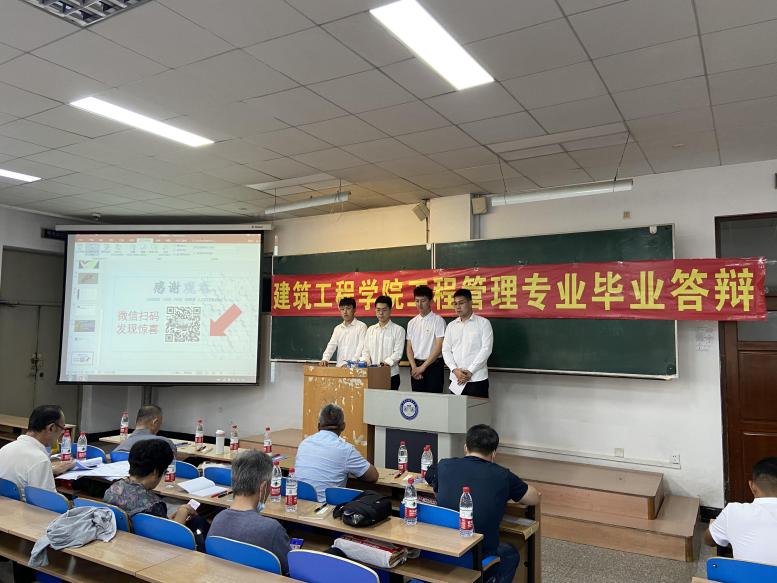根据学校毕业设计进度安排,工程管理2021届毕业设计答辩于6月15-17日进行,并于6月15日上午进行了毕业设计公开答辩,公开答辩聘请了两位校内外专家,学院党委副书记邵广军同志亲临指导。其中陈鑫宇同学以“辽宁省鞍山市众达幸福里单位工程施工组织设计与施工图预算”为题,侯占峰、唐辉、韩慧聪、牟睿四位同学组成团队以“英国365集团公司新建四栋学生公寓BIM建模与施工模拟”为题进行了毕业设计公开答辩。答辩过程包括两个部分,首先进行德育答辩后进行专业答辩,2021届工程管理专业的所有学生和工程管理教研室的教师参加了公开答辩,而后进行了小组答辩,经过两天的工作,顺利完成了毕业设计答辩工作。