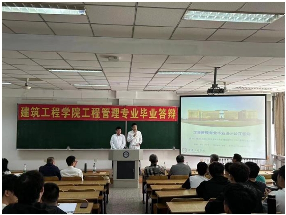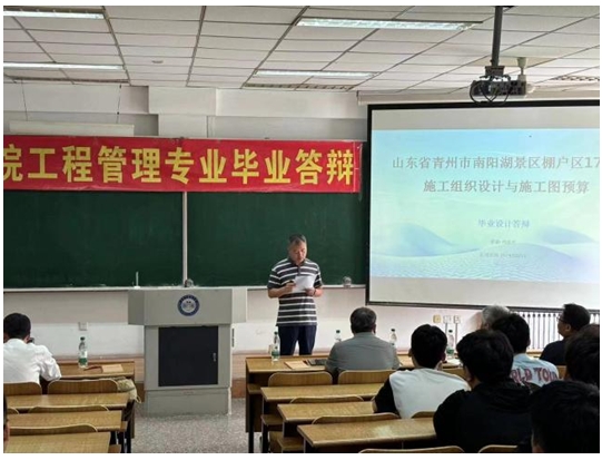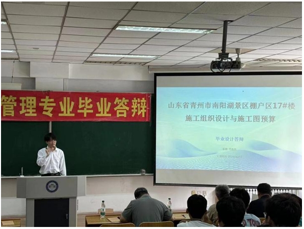 根据学校毕业设计进度安排,工程管理20级毕业设计于6月7日全部上交,6月11-12日进行毕业设计答辩,其中6月11日上午进行毕业设计公开答辩,公开答辩聘请了两位校内外专家,学院教学院长姜封国亲临指导。公开答辩由两个毕业设计方向的答辩组成,由代浩杰同学进行其“山东省青州市南阳湖景区棚户区17#楼施工组织设计与施工图预算”毕业设计答辩,由乔天宇和张成两位同学进行其“英国365集团公司安全与应急管理实践平台A、B栋BIM建模与施工模拟”毕业设计答辩。所有小组答辩过程采取封闭式答辩方式,其它学生不准旁听。工程管理专业20级共83名同学,所有同学都顺利完成了毕业答辩。