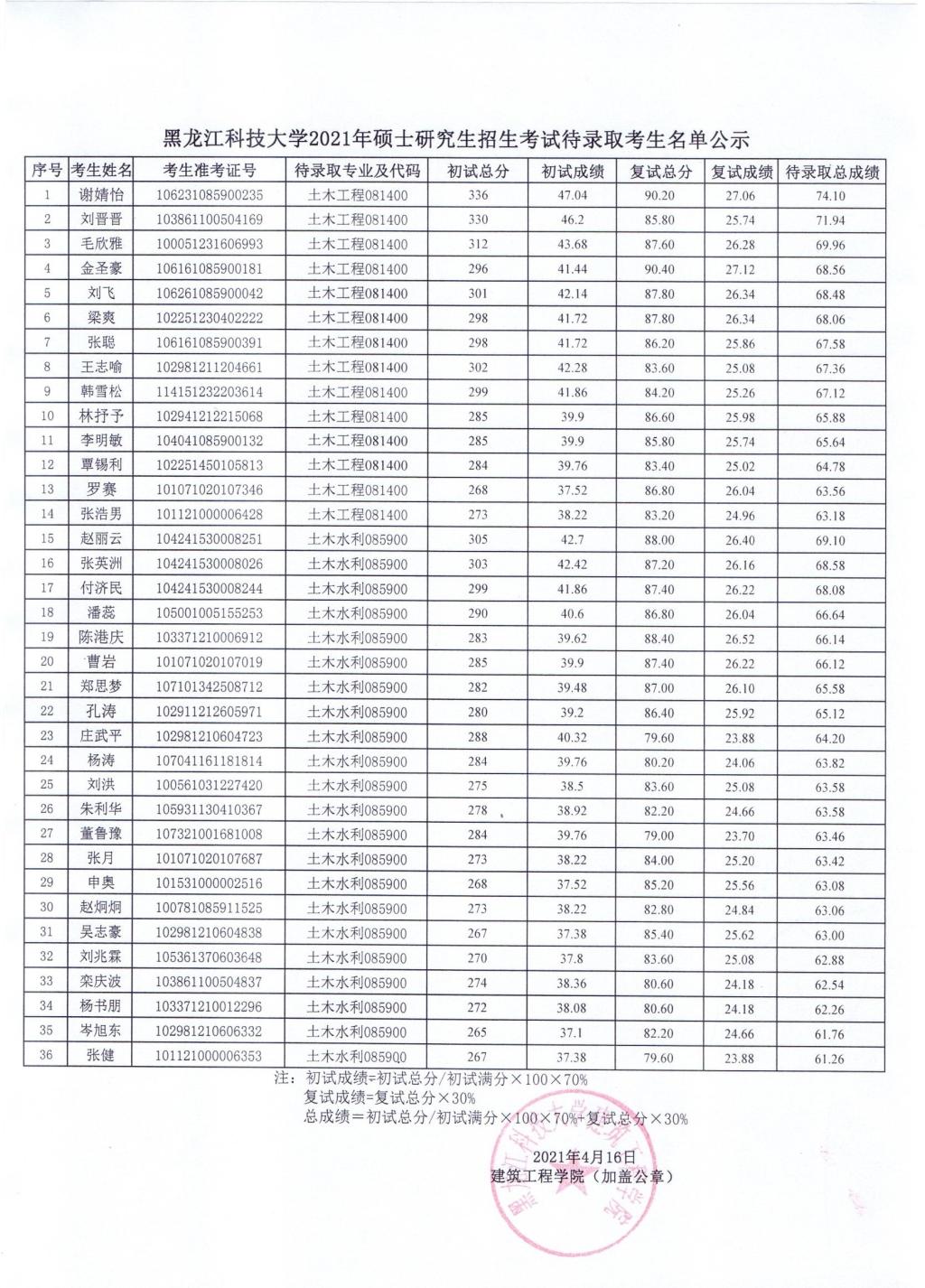 根据考生初试和复试成绩计算出的最终待录取总成绩,英国365官网确定以下36名待录取考生,现将名单公示如下(按待录取总成绩降序排名):