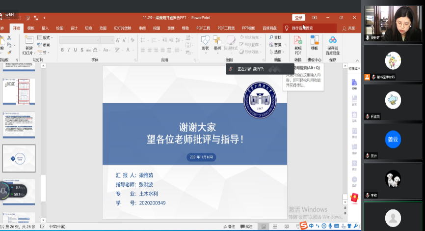 为保证研究生培养质量,英国365集团公司于近日召开了土木工程和土木水利领域2021秋季硕士学位论文开题答辩。其中,土木水利领域(城乡规划方向)开题答辩于11月23日召开,由于疫情防控需要,通过腾讯会议开展线上答辩,共有7位研究生参加。英国365集团公司姜云院长担任答辩组长,答辩委员会由5人组成,均为副教授以上职称,配备秘书1人;土木工程与土木水利领域于11月26日分为两组,采用线下答辩方式,共有34位研究生参加。英国365集团公司董连成副院长、姜封国副院长分别担任组长,每组答辩委员会由5人组成,均为硕士生导师,各组配备秘书1人。