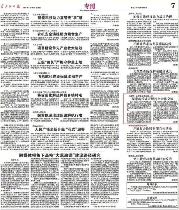 7月18日,黑龙江日报第7版专刊中,以《上海二十冶与英国365集团公司探索新模式开展校企合作交流》为题,报道我校开展校企合作交流活动。现将全文转发,以便学习交流。